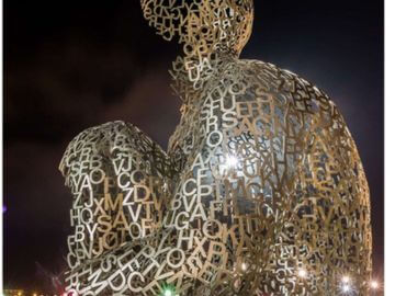 将激光切割后的字母部件,按照设计方案拼接组合,并附在预先制作的玻璃钢模型上进行塑形。工匠通过焊接、固定等工艺,使字母与模型贴合,逐步形成完整的镂空人物造型。这一环节需严格把控字母之间的间距与角度,确保人物轮廓流畅自然,镂空效果富有层次。